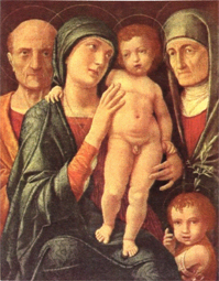 "Holy family with johanneslad" Andrea Mantegna [commons.wikimedia.org/wiki/File:Andrea_Mantegna_085.jpg ],
