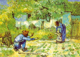 "First steps" Vincent van Gogh [commons.wikimedia.org/wiki/File:1890_van_Gogh_First_Steps_-_after_Millet_anagoria.JPG],